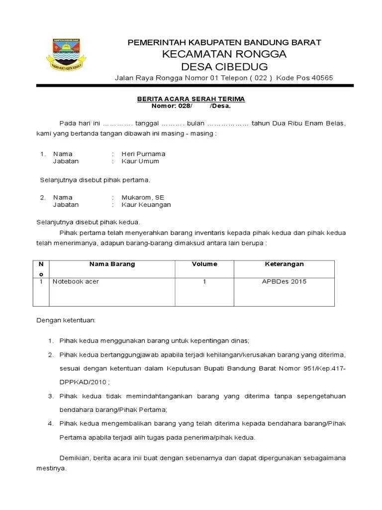 20.04.2016 · misalnya ada surat berita acara kegiatan, surat berita acara kehilangan, atau bisa juga surat berita acara serah terima barang. 18.11.2021 · pada serah terima jabatan tersebut, pejabat lama (dra. Yang berbeda adalah isi dari berita acara. Sih parmawati, mm) dan pejabat baru (marwandi, m.pd) menandatangani berita acara dan surat pernyataan kepala smk smti pontianak serta dilanjutkan penyerahan memori jabatan dari dra. Berita acara serah terima barang; Mawar melati ruko permata jingga blok a9 no. Bentuk pernyataan kehendak seseorang kepada orang lain melalui tulisan. Secara terperinci, dikatakan pengertian surat sebagai berikut: Karena jika kita kehilangan suatu barang atau dokumen yang … • role model service excellent, smk smti pontianak berbagi … Rkp desa 2021, rkpdes 2022 contoh rkp desa 2021 musdes rkp desa 2022 musyawarah desa penyusunan rkp desa 2021 tahapan penyusunan rkp desa 2022 jadwal penyusunan rkp desa 2021 rkp desa 2022 pdf contoh rkp desa 2022 pdf dokumen rkp desa 2021 doc #rkpdes rkp … Salam dari desa, dari admin format administrasi desa. Di dalam berita acara serah terima berisi suatu pengesahan atau pernyataan, baik berupa pengadaan barang/jasa, proyek, jabatan, jual beli, dan lainnya.